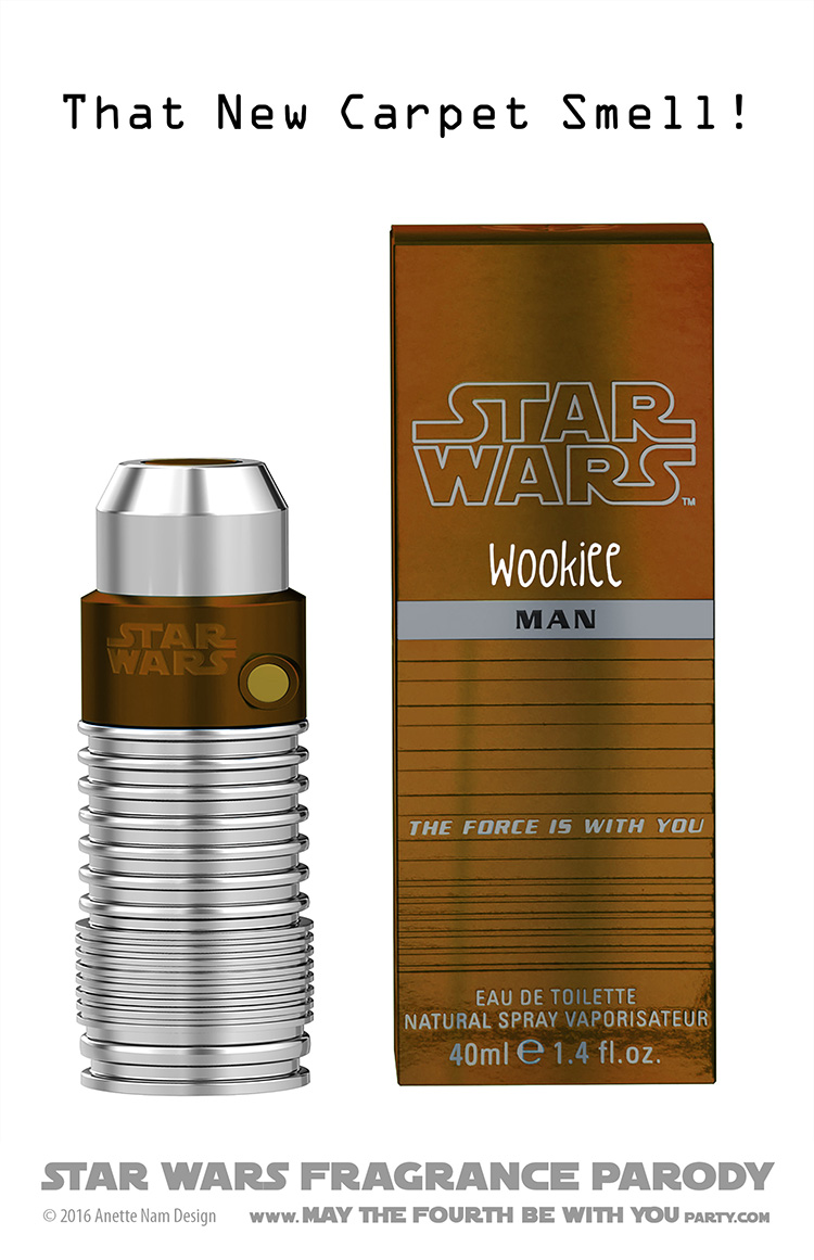 Star Wars Fragrance Parody / We add new Star Wars fun to our blog every week! / #starwars #parody #chewbacca #wookiee #tauntaun #hansolo #nerfherder #smell #amidala #fragrance #perfume #jedi #empire #gift #geek #spoof #lifestyleperfumes / maythefourthbewithyoupartyblog.com
